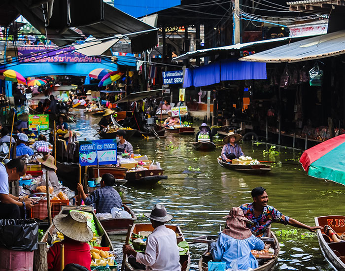 - Visita al Mercado flotante de Damnoen Saduak en Bangkok.